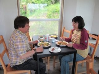 橋本組の皆さんがお昼ごはんを食べに来てくださいました。いらっしゃいませ。