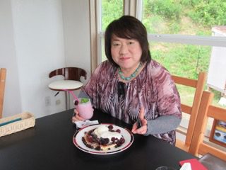 常連のカオリさんがパンケーキを食べに来られました。いらっしゃいませ。
