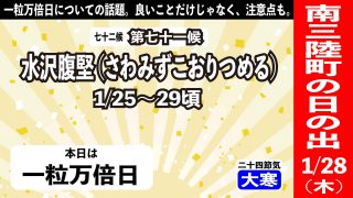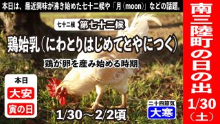 今朝は沖にかかった雲の上からの日の出が見られました。今朝の話題は新しく始まった七十二候や、空に浮かぶ月などのお話などです。