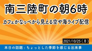 おはようございます。 今朝もカフェから見える海や天気の様子を朝6時からライブ配信します。 南三陸町の朝の様子が気になる方は参考にしてください。