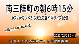おはようございます。 カフェから見える空や海の様子を朝6時15分からライブ配信します。 南三陸町の朝の様子が気になる方はご覧ください。