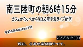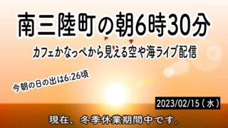 おはようございます。 カフェから見える空や海の様子を朝6時15分からライブ配信します。 南三陸町の朝の様子が気になる方はご覧ください。