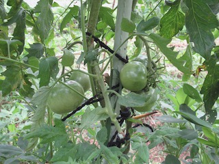 苗床の上で寝転がるのが好きなドンちゃん、今日は控えてくれています。