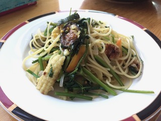 夕飯は今朝大量に収穫したハーブセロリがたっぷり入ったペペロンチーノでした。