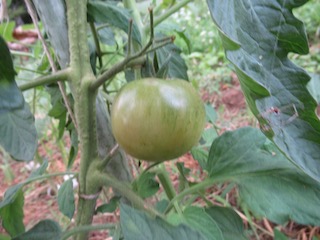 大玉トマト、少し赤い色になり始めました。