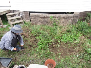 店の玄関付近が粘土団子畑だと荒れた雰囲気になってしまうので、残念ですが自然農の畝に切り替えます。