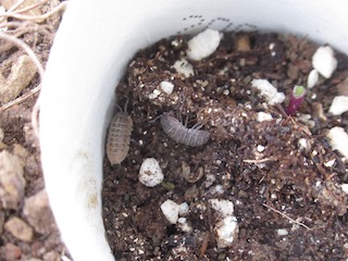 1つは完全にダンゴムシ(ワラジムシかな)に食べられてしまったようです。