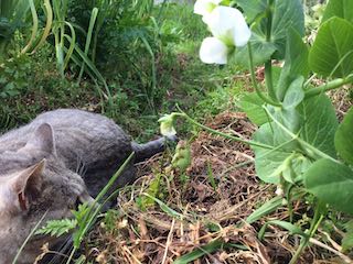 ジャガイモの足元で去年種を蒔いたレタスが発芽していました。