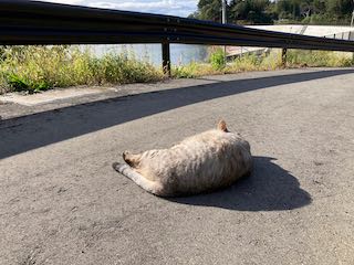 玄関で寝ている虎次郎が愛嬌を振りまいていました。