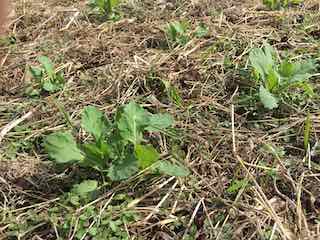 春菊の畝の奥側には「のらぼう菜」が育っています。