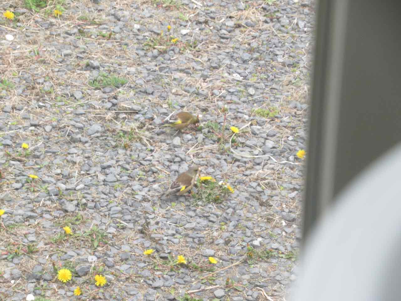 羽根が黄色い小鳥がいました。カワラヒワでしょうか。