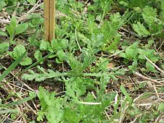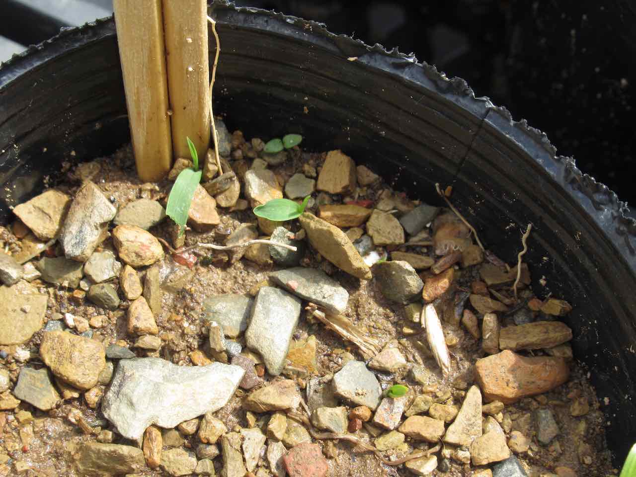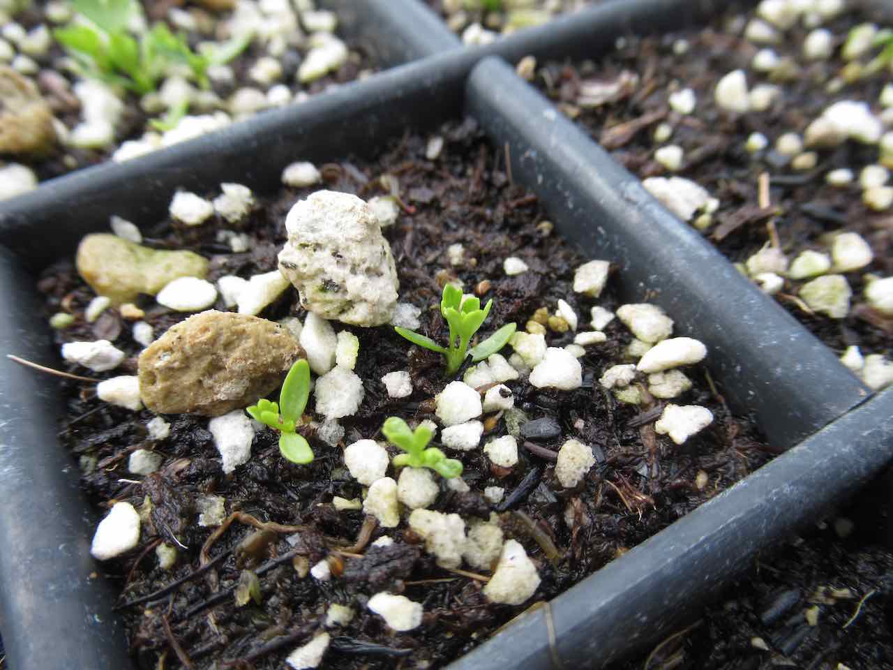 ラディッシュの芽。こちらも葉が欠けていましたが、新しい葉を出し始めています。