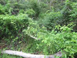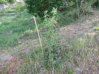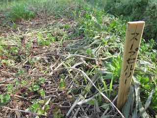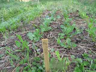 伊勢ピーマンの芽。わかりづらいので今日はこの周辺の草を取り除きました。