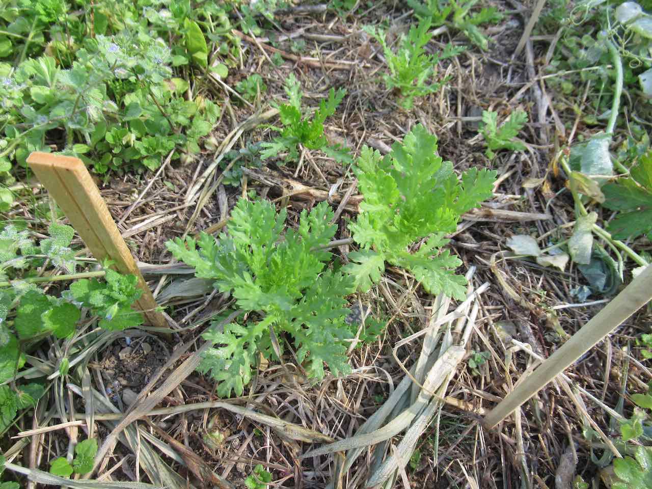 春菊付近に落とした種から成長した小松菜。今日も元気そうです。