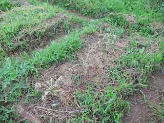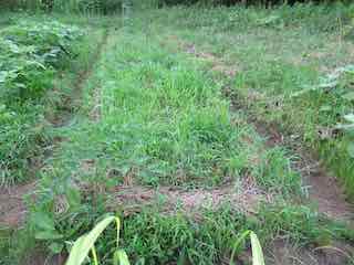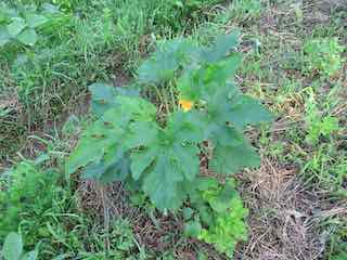 これまで花が咲いては散り続けていたズッキーニ、まずは行灯でウリハムシを避けていたものから実がつき始めました。