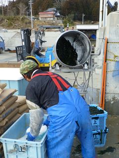わかめの作業で活気づいていました。