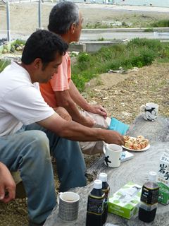 水道業者の皆さんにもアツアツのたこ焼きをご馳走しました。