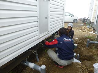 ガソリンスタンドのアキヒロさんにトレーラーハウスのガスの配管をお願いしました。