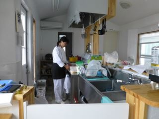 明日のオープンへ向けてカナエさんが食材の仕込みをしていました。