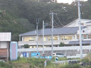 津波で大きな被害を受けて今年の11月に再開予定の名足小学校の校舎内に電灯が点いていました。