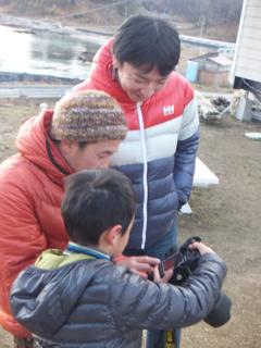 トネさんが甥っ子にカメラの使い方を教えていました。