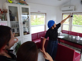 私たちが来ているのに気付いた芳賀さんが登場しました。
