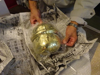 手配していた五十鈴神社の鈴と鈴紐をチェックしています。