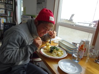 お米農家の芳賀さんもお昼を食べに来られました。いらっしゃいませ。