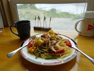 今日の私のお昼は季節野菜のミートソースでした。