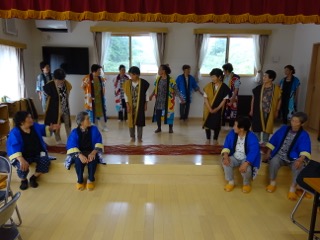 来月末の敬老会で発表する踊りの練習が始まるようです。