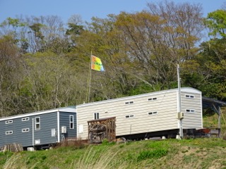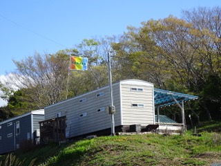 今日は風が少し強かったですが、先日作ったかなっぺの旗を揚げてみました。